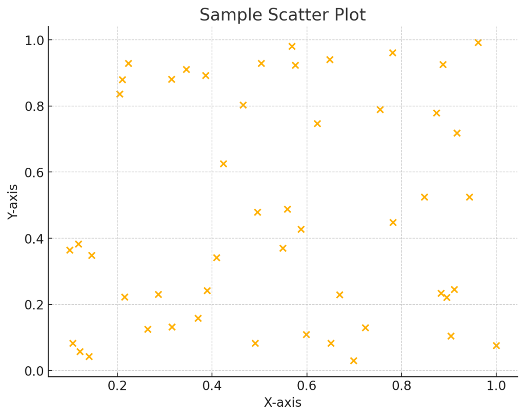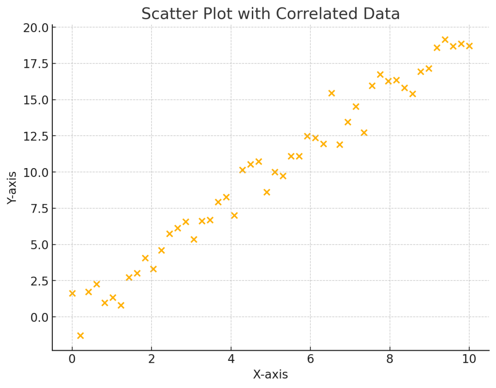 - 산점도: 위의 산점도는 상관관계가 있는 데이터를 시각화한 예시다. x축 데이터에 따라 y축 데이터가 선형적으로 증가하는 경향을 보여주고 있다.