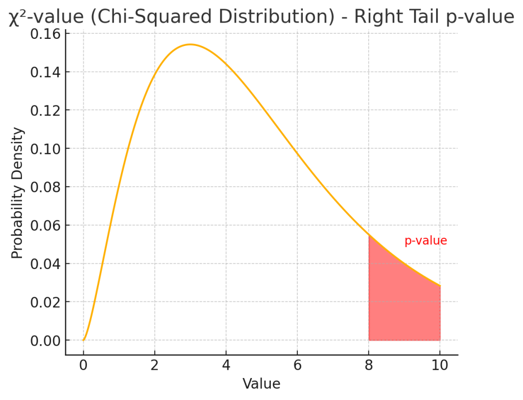- 자유도 2 (df=2ㅏ): 매우 뾰족하고 오른쪽으로 크게 치우친 형태를 가진다. 매우 큰 값이 나올 확률이 높다는 것을 의미한다.