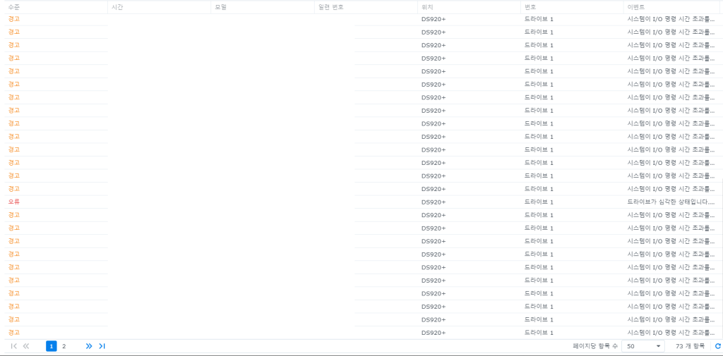 몇일 전부터 계속 I/O 명령 시간 초과가 떳었는데 귀찮아서 냅두고 있었다가 gitea가 먹통이 되버렸다.