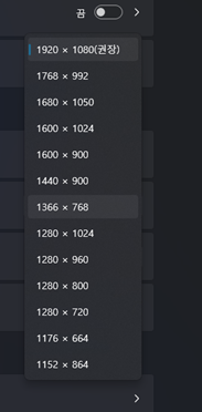 따라서 위의 내용대로 해 주고 나면, 본인이 사용할 해상도가 나타나게 된다.
