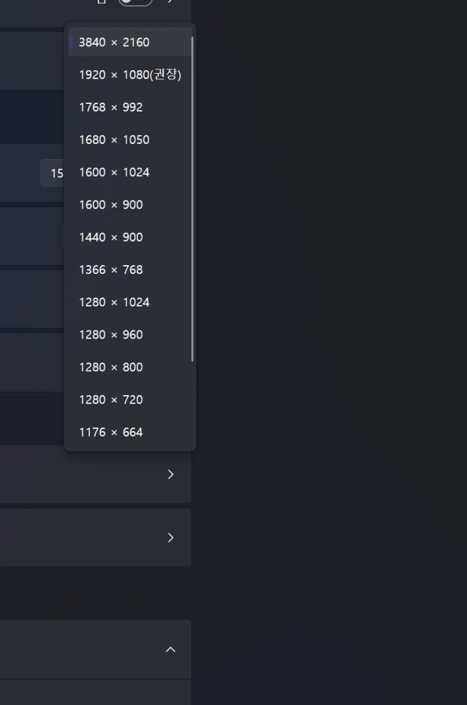 내가 쓰는 해상도는 어디가고, 갑자기 이상한놈이 들어와있다.