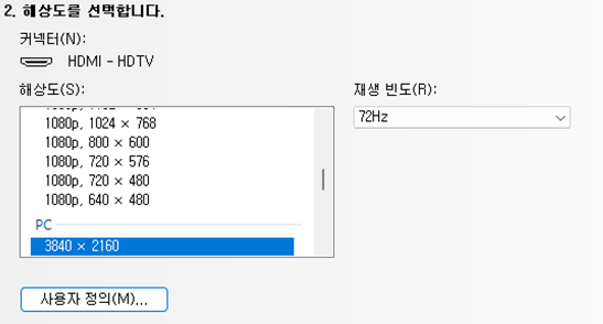이렇게 쓰기엔 눈이 피로하다. 따라서 사용자 정의 해상도를 사용해야 한다.