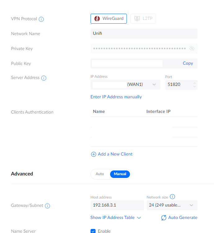 와이어가드로 망 연결하기 2023년 03월 26일 · # IT # 네트워크 처음에 시놀로지 VPN을 사용하려고 했는데, 귀찮고 더럽게 짜증나서 Unifi를 쓰기로 결정했다. Unifi 내부망으로 들어가서 세팅을 해주면 된다. 아래 VPN Server에서 Create VPN Server를 눌러주자. 참고로 기본 인증서 상태에서 와이어가드를 외부망에서 접속해서 사용할 시 전체 내부망이 마스킹…